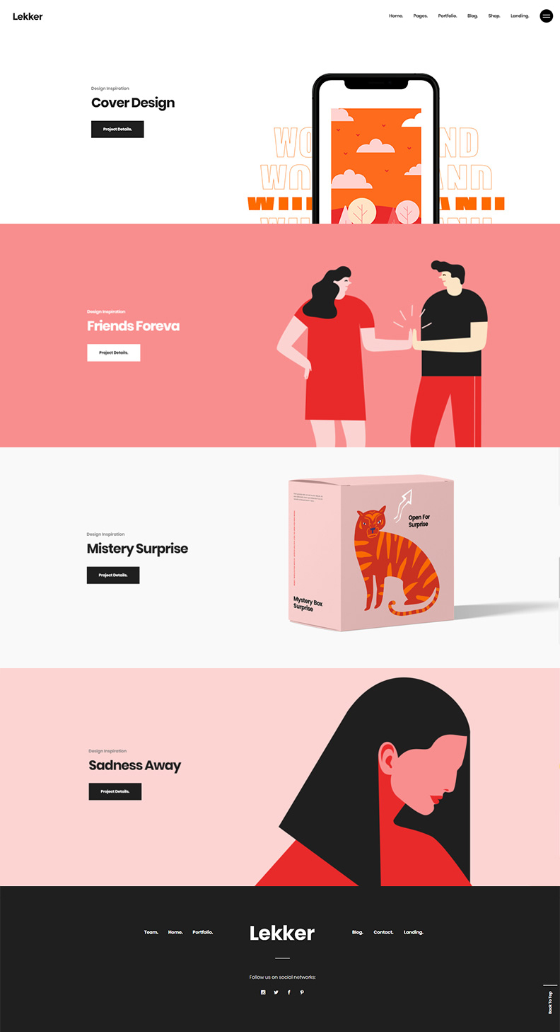 Alongside a huge diverse selection of portfolio styles, Lekker provides you with tons more predesigned inner page layouts for various uses.